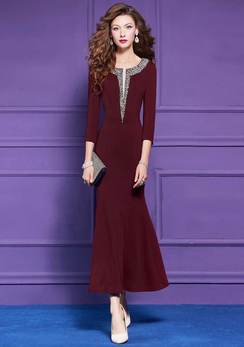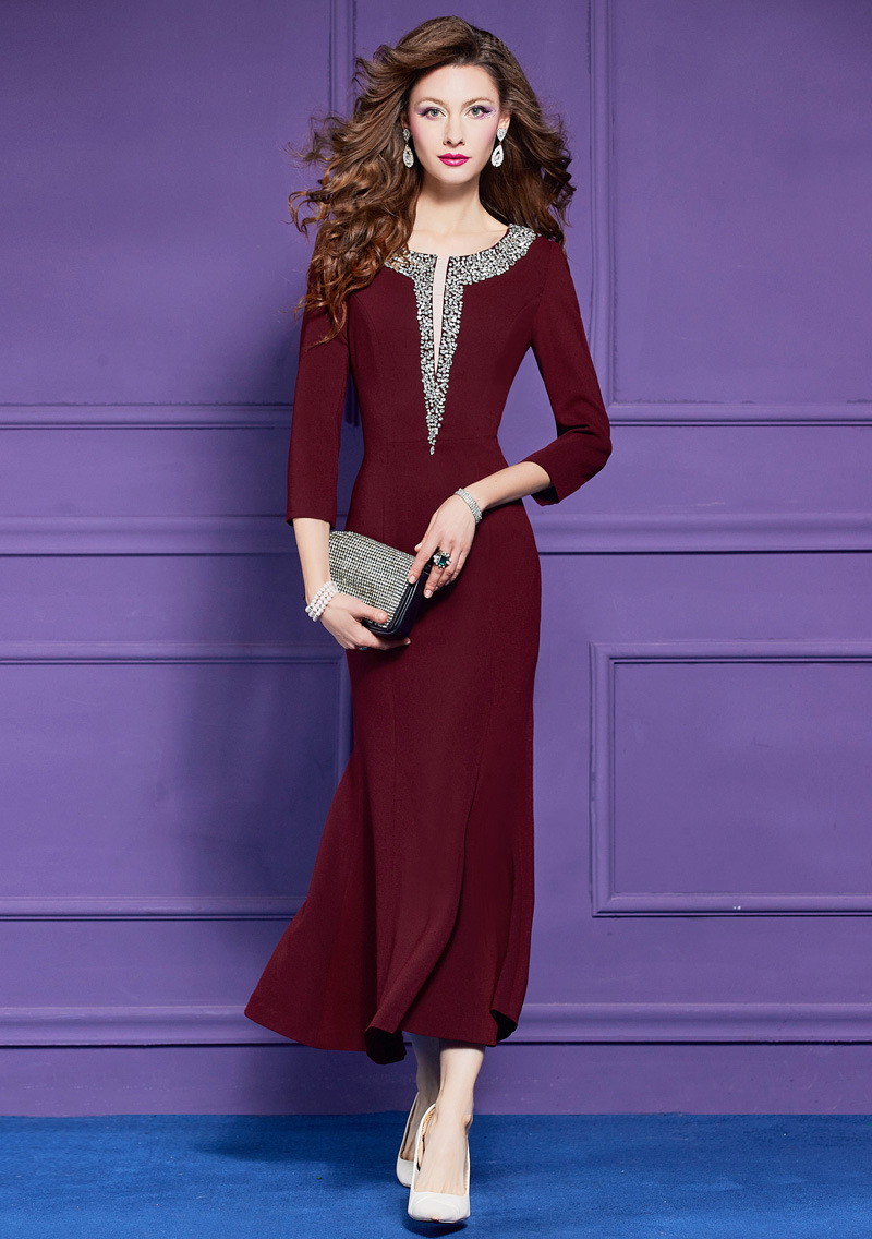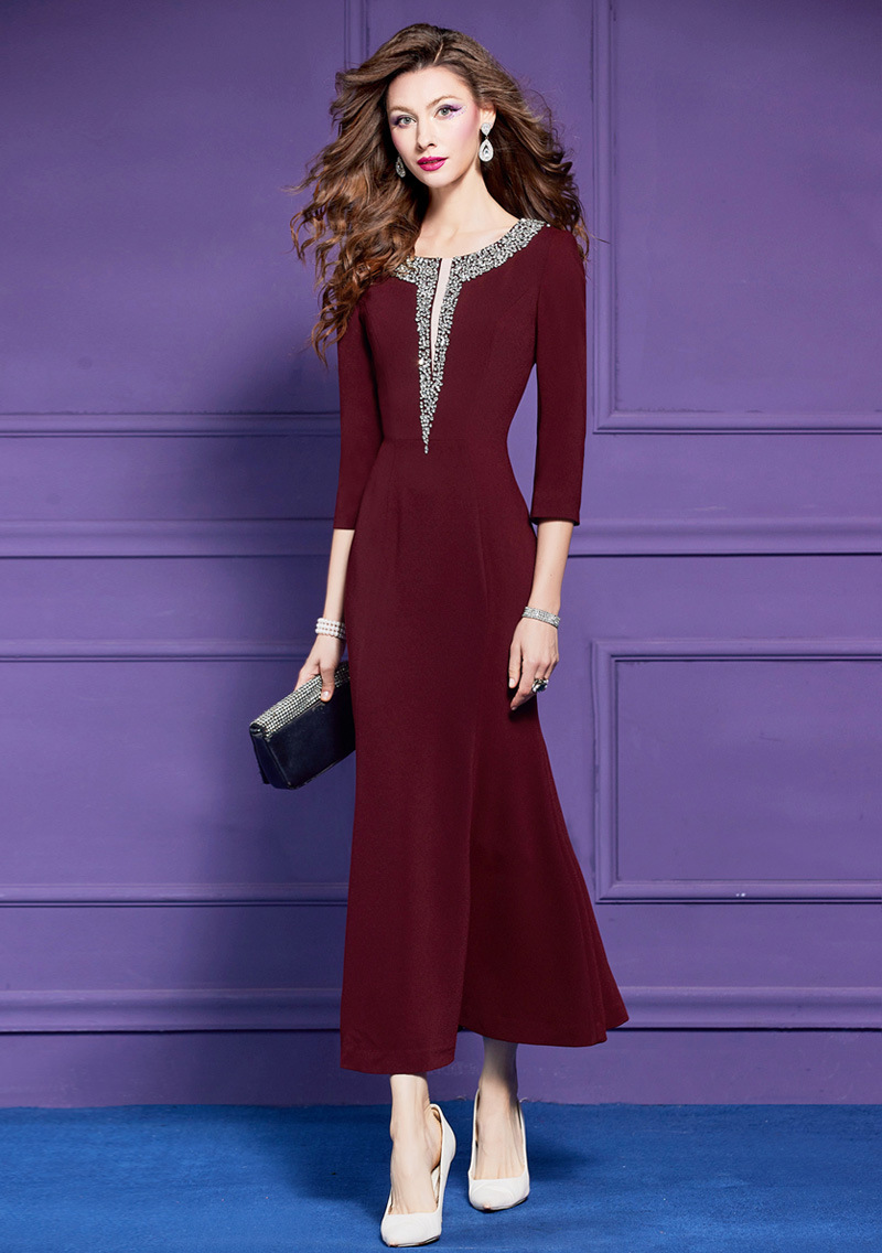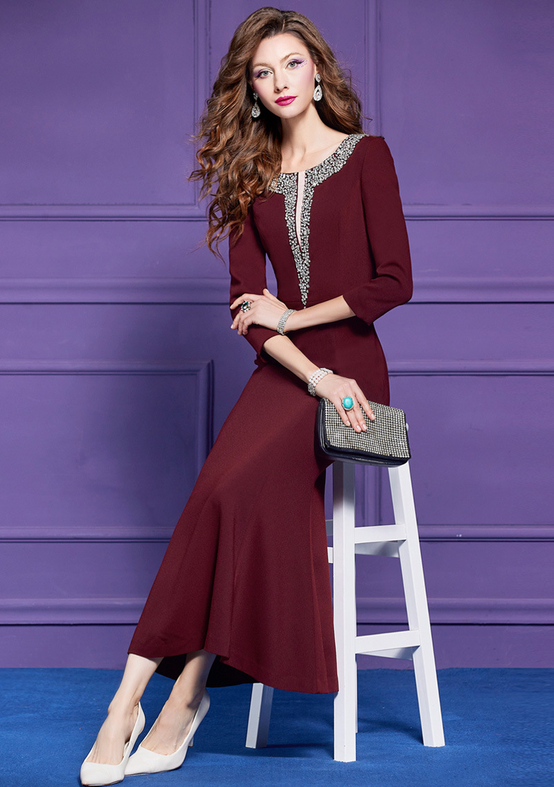 Product Name 产品名称: Beaded Red Dress for Women: Fall Collection, Mature - Style, Exquisite, Elegant, High - End, Long Dress (Evening Gown)