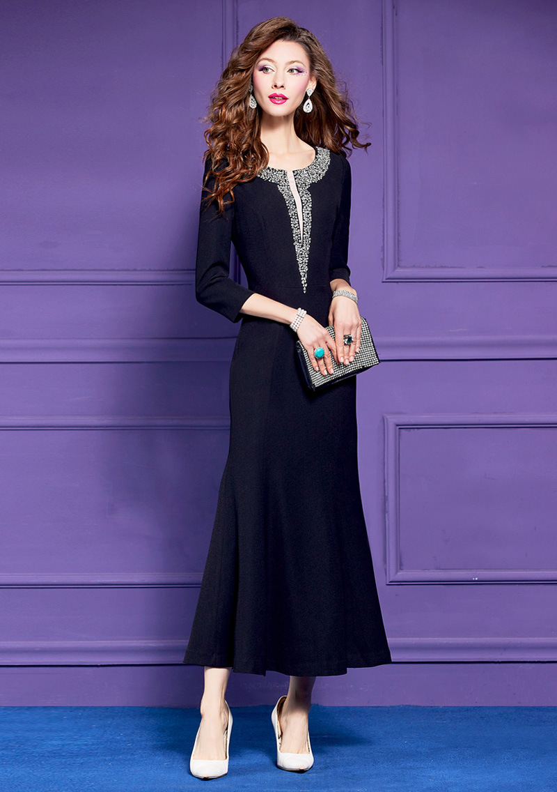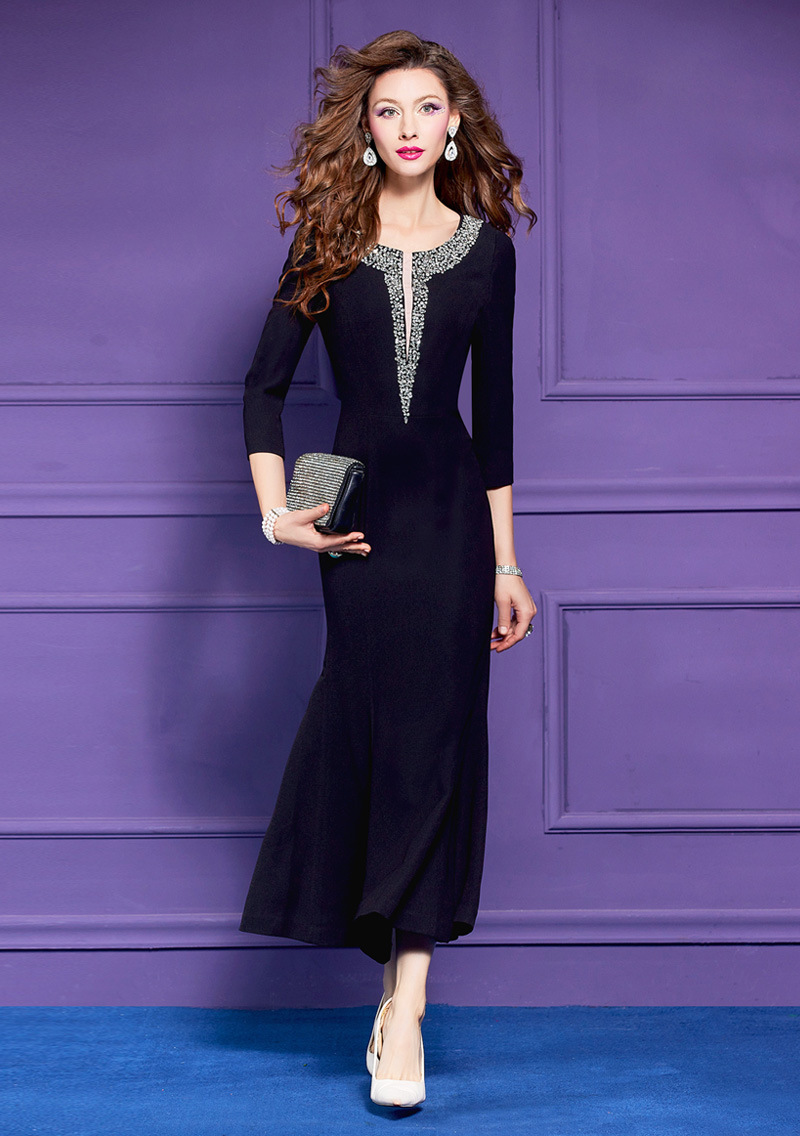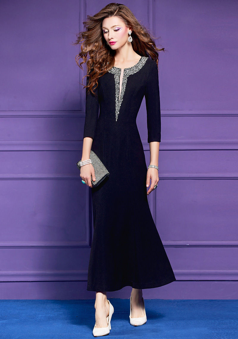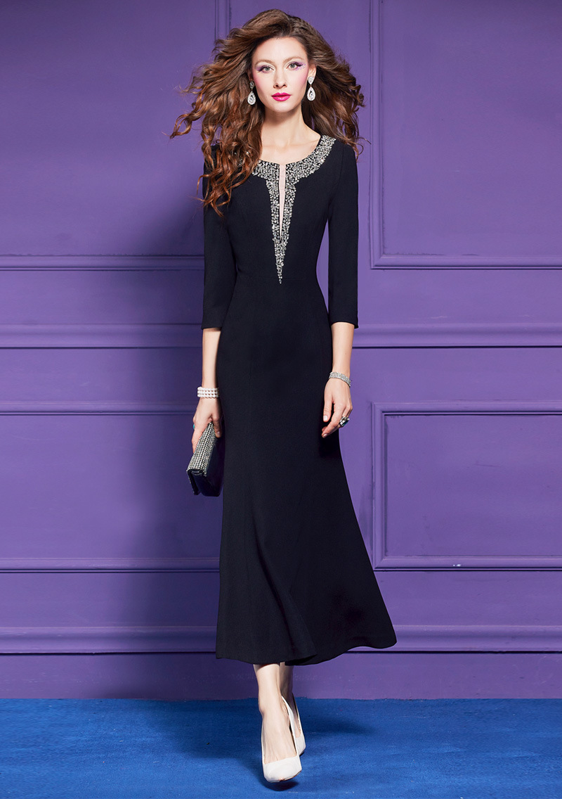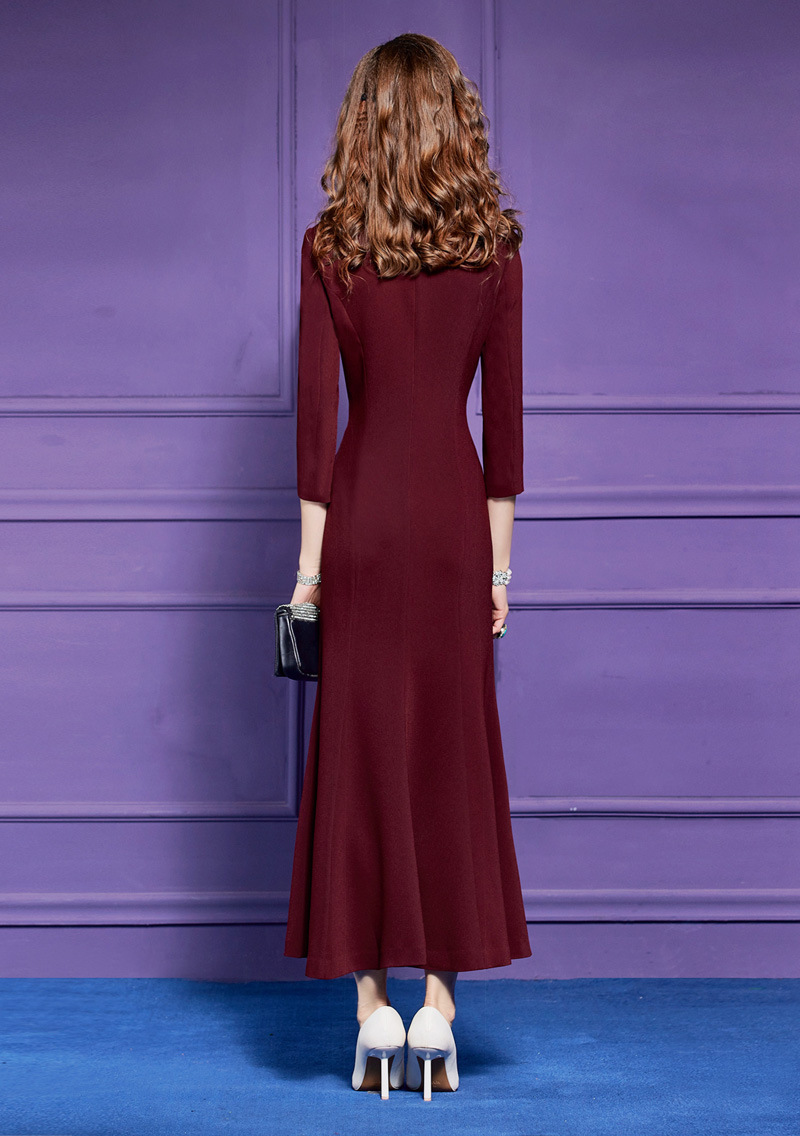 Product Name 产品名称: Beaded Red Dress for Women: Fall Collection, Mature - Style, Exquisite, Elegant, High - End, Long Dress (Evening Gown)