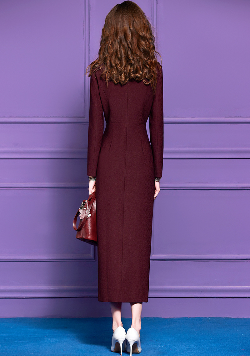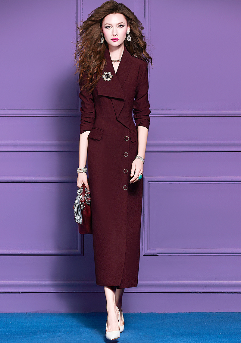 Product Name 产品名称: Red Suit Dress for Women - Winter Flared Business Commuting Elegant Mid-Length Single-Breasted Coat‌
