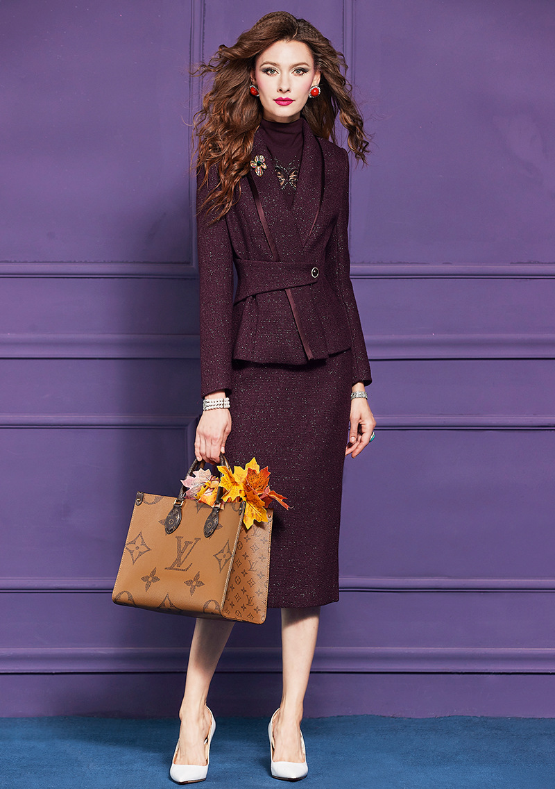 Product Name 产品名称: Wool-Containing Sequined Fashion Suit for Women - Winter Vintage High-End Thickened Tweed Blazer Skirt Set‌