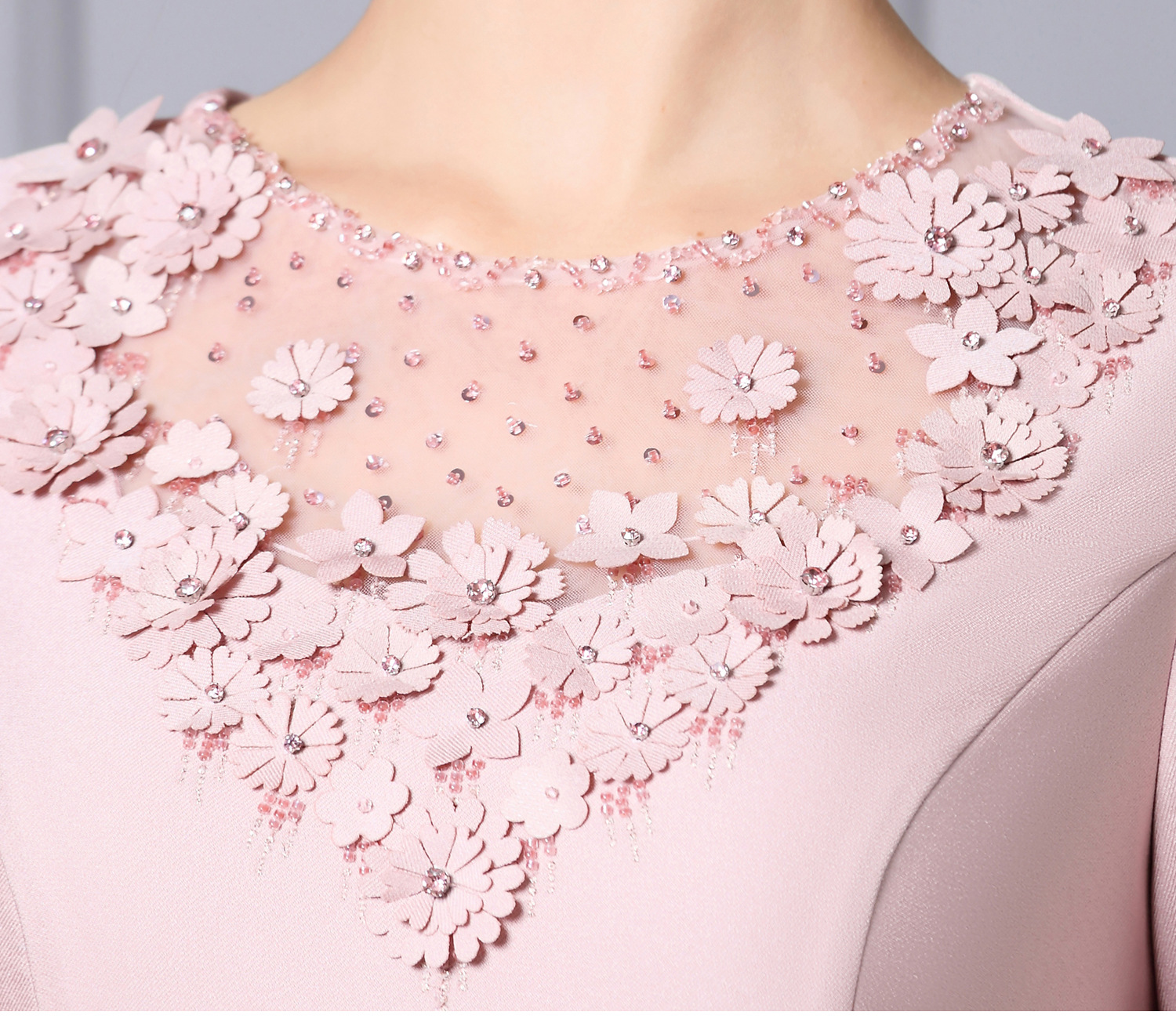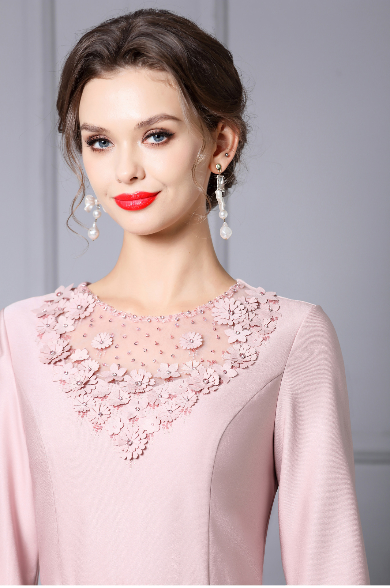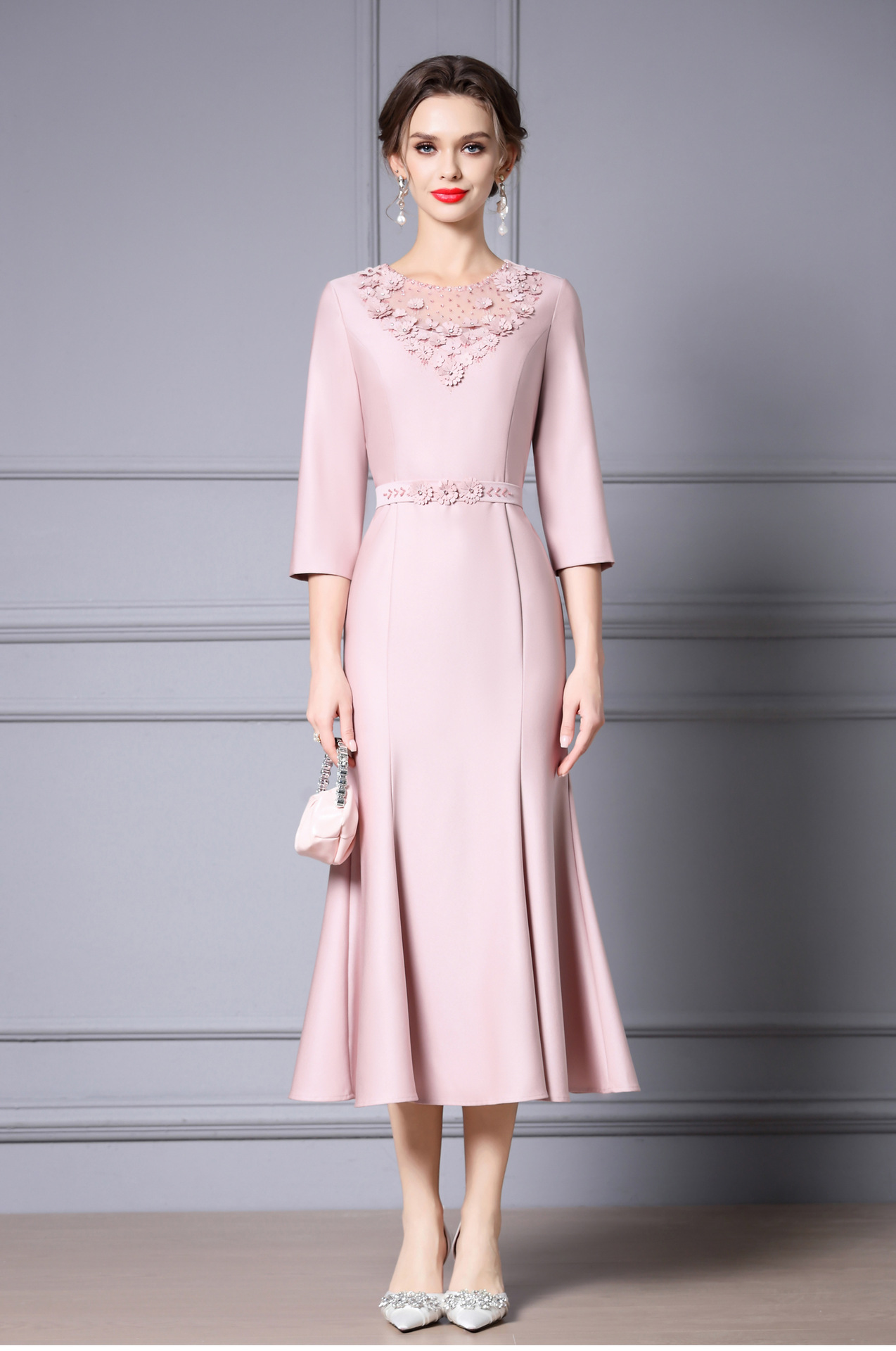 Product Name 产品名称: French-Style Dress for Women - 2025 New Spring/Summer Pink Tulle Beaded 3D Floral Mermaid Gown‌
