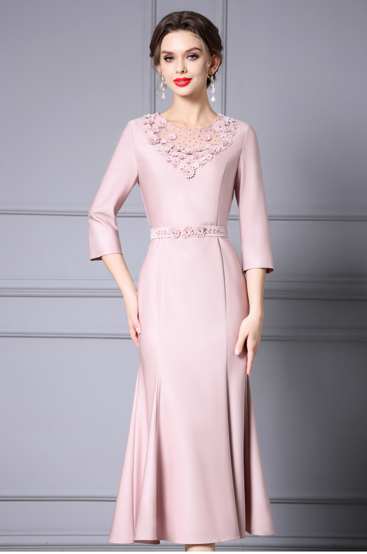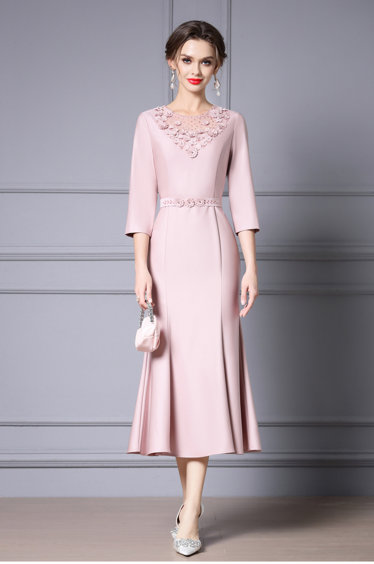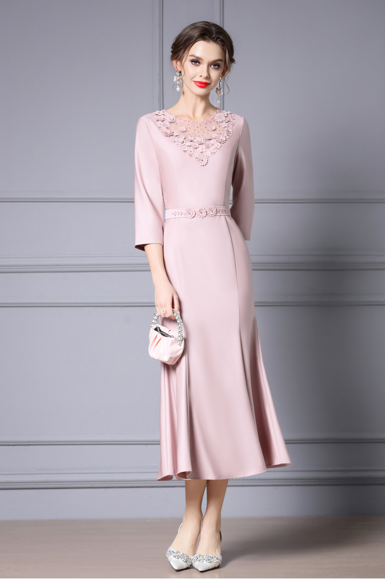 Product Name 产品名称: French-Style Dress for Women - 2025 New Spring/Summer Pink Tulle Beaded 3D Floral Mermaid Gown‌
