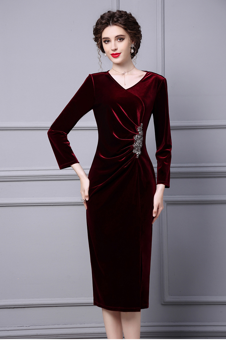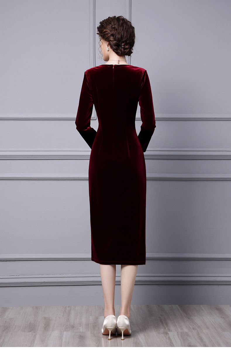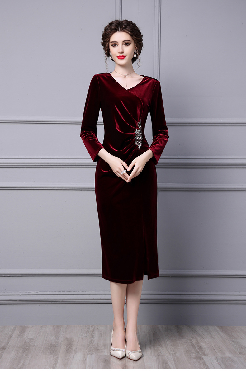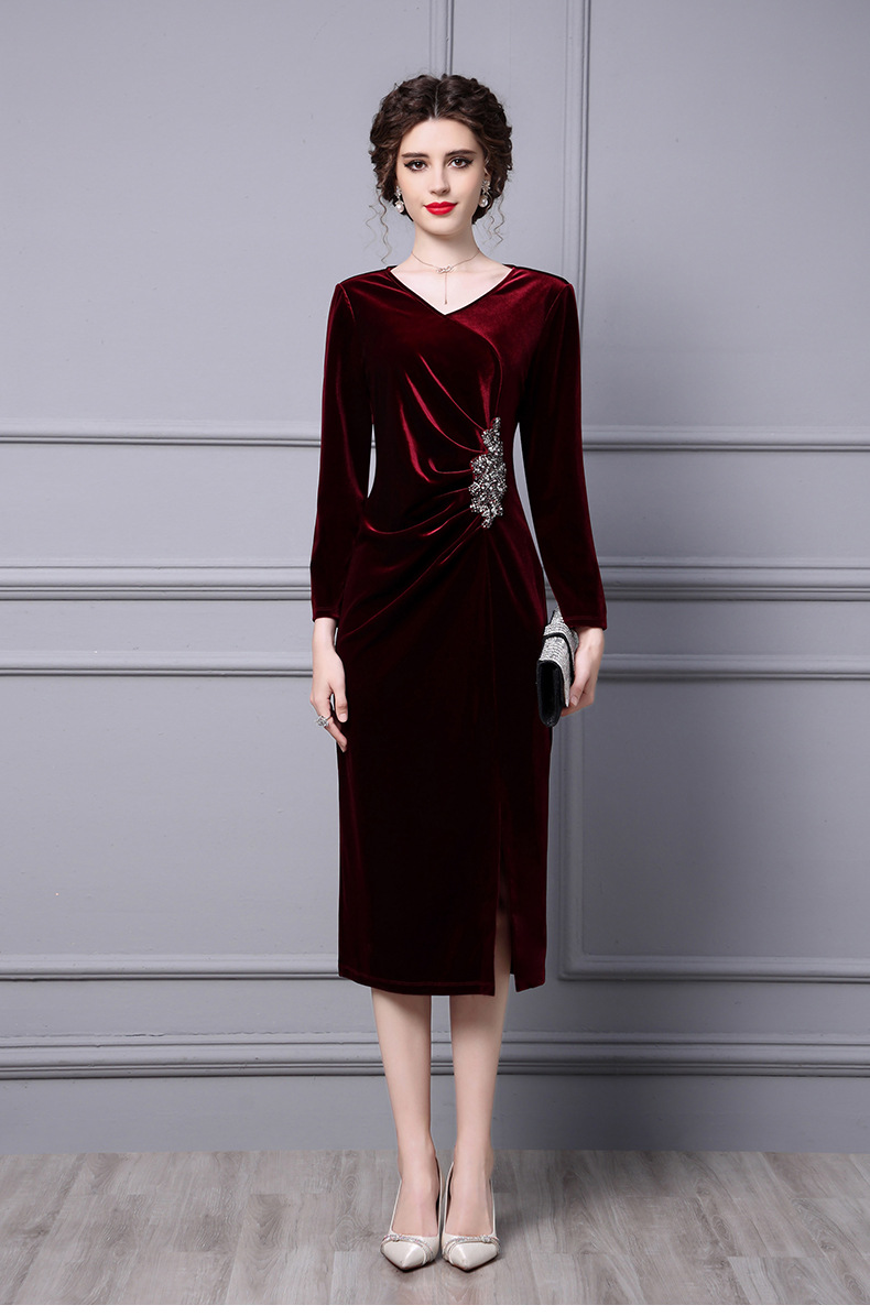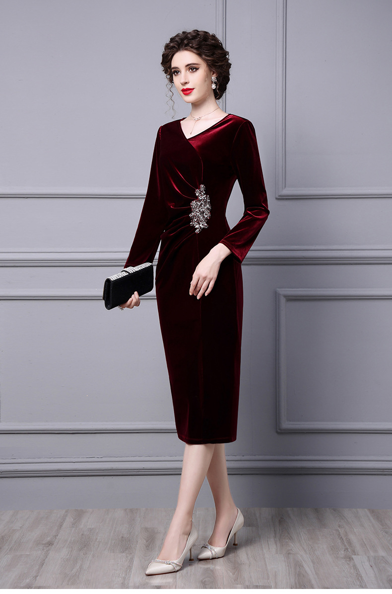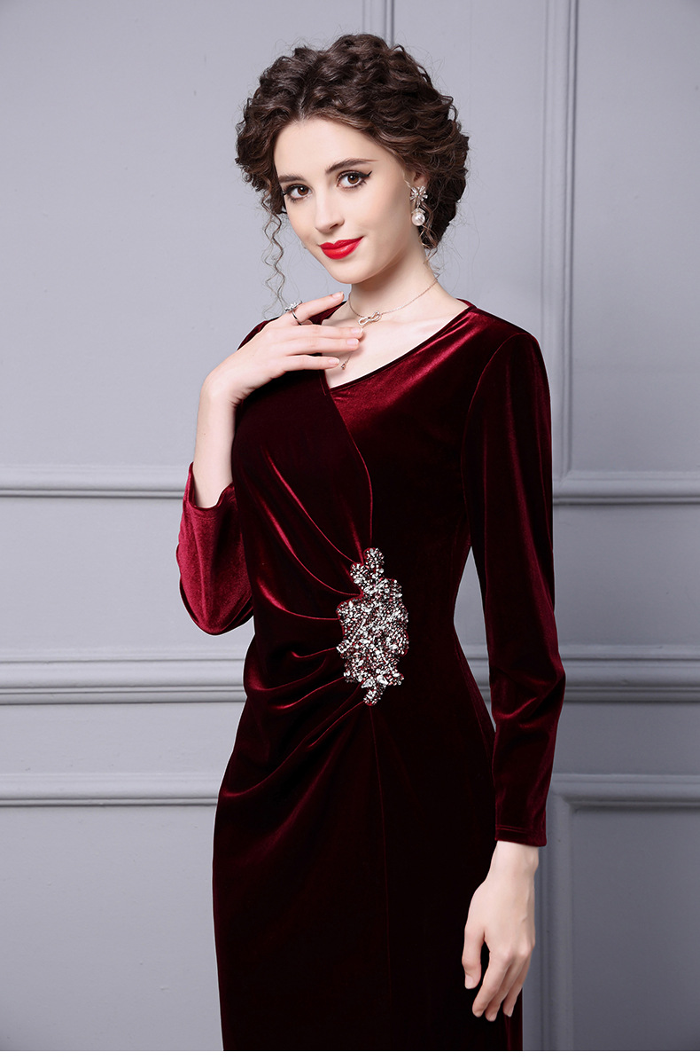 Product Name 产品名称: Velvet Dress for Women - Autumn 2025 New Beaded Long Mermaid Skirt to Match Coat for Formal Occasions‌