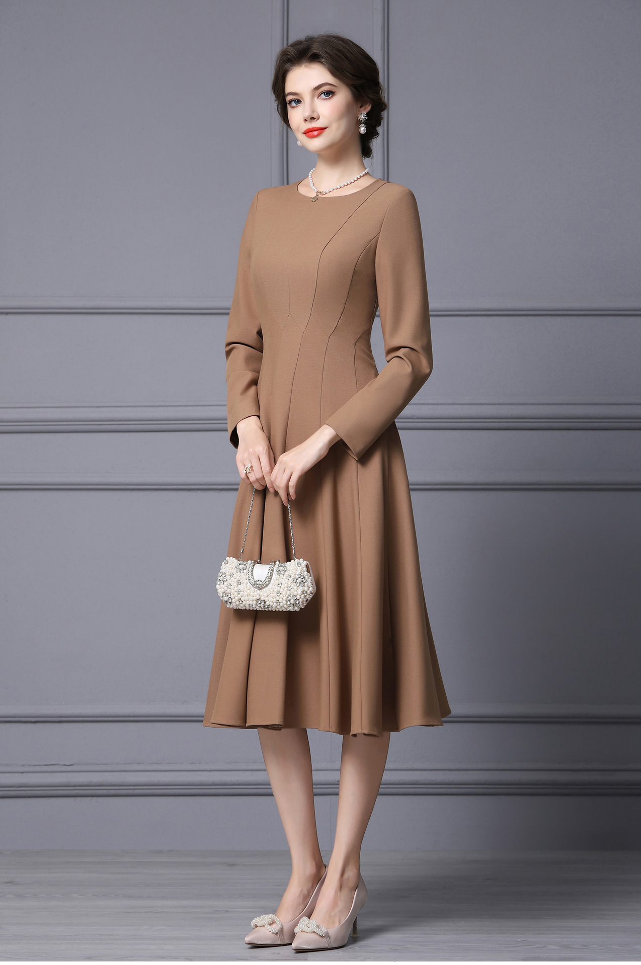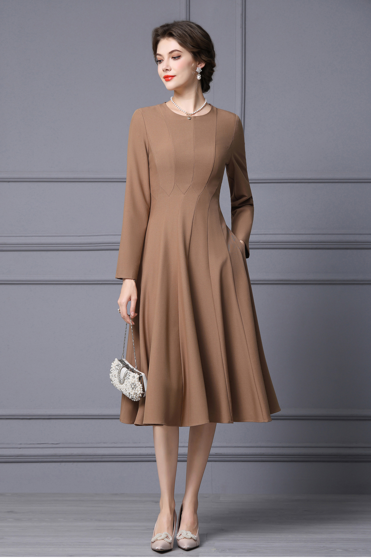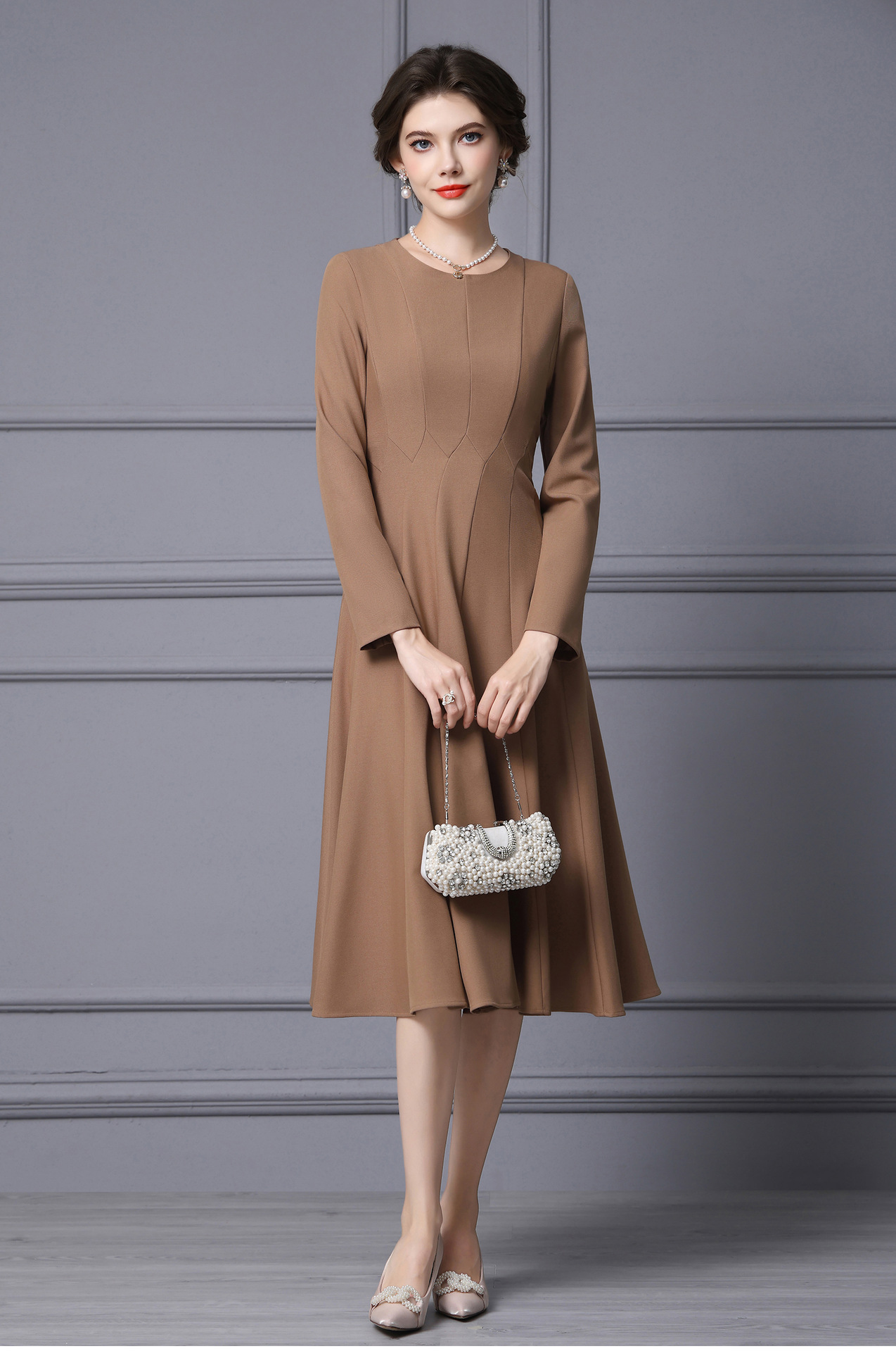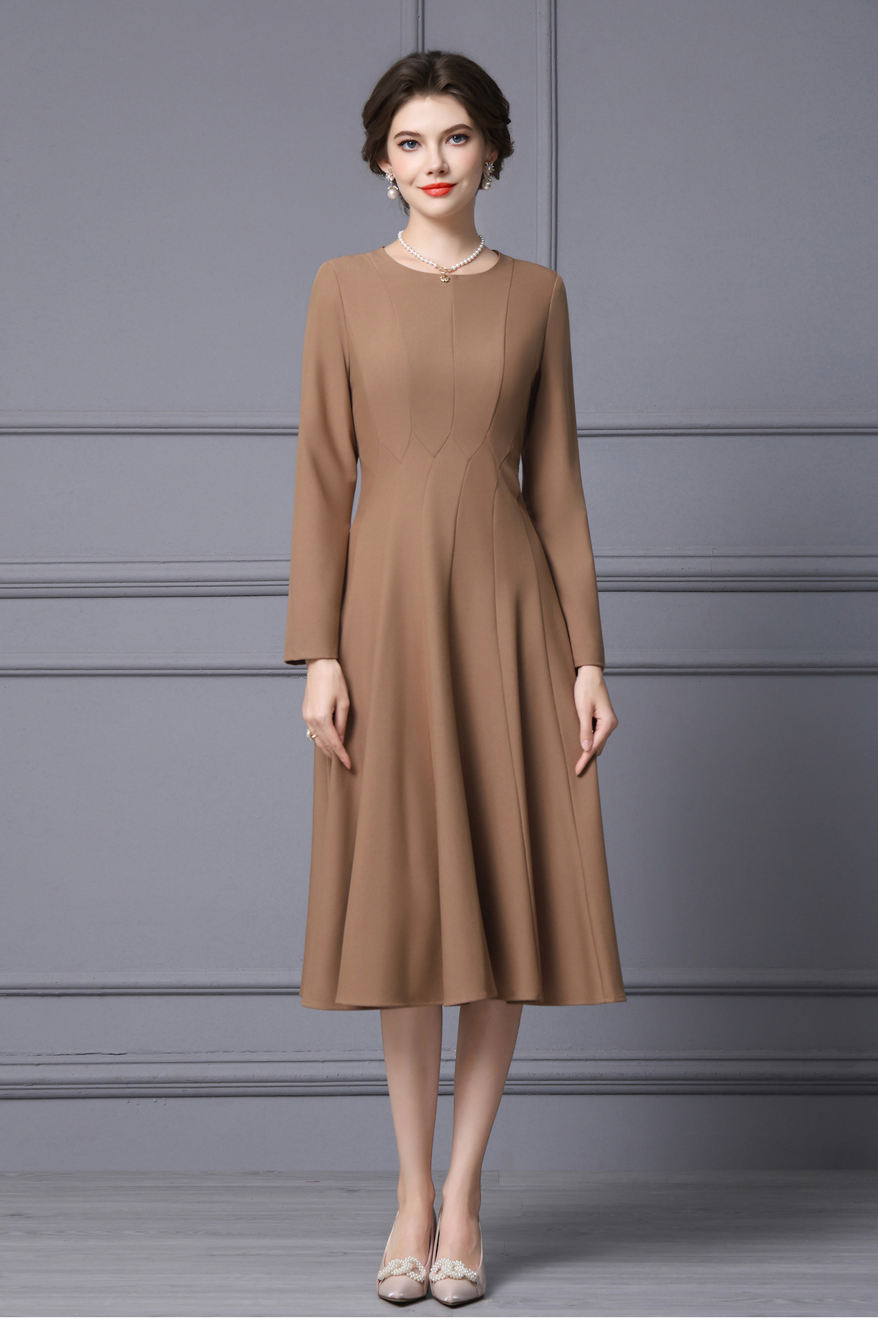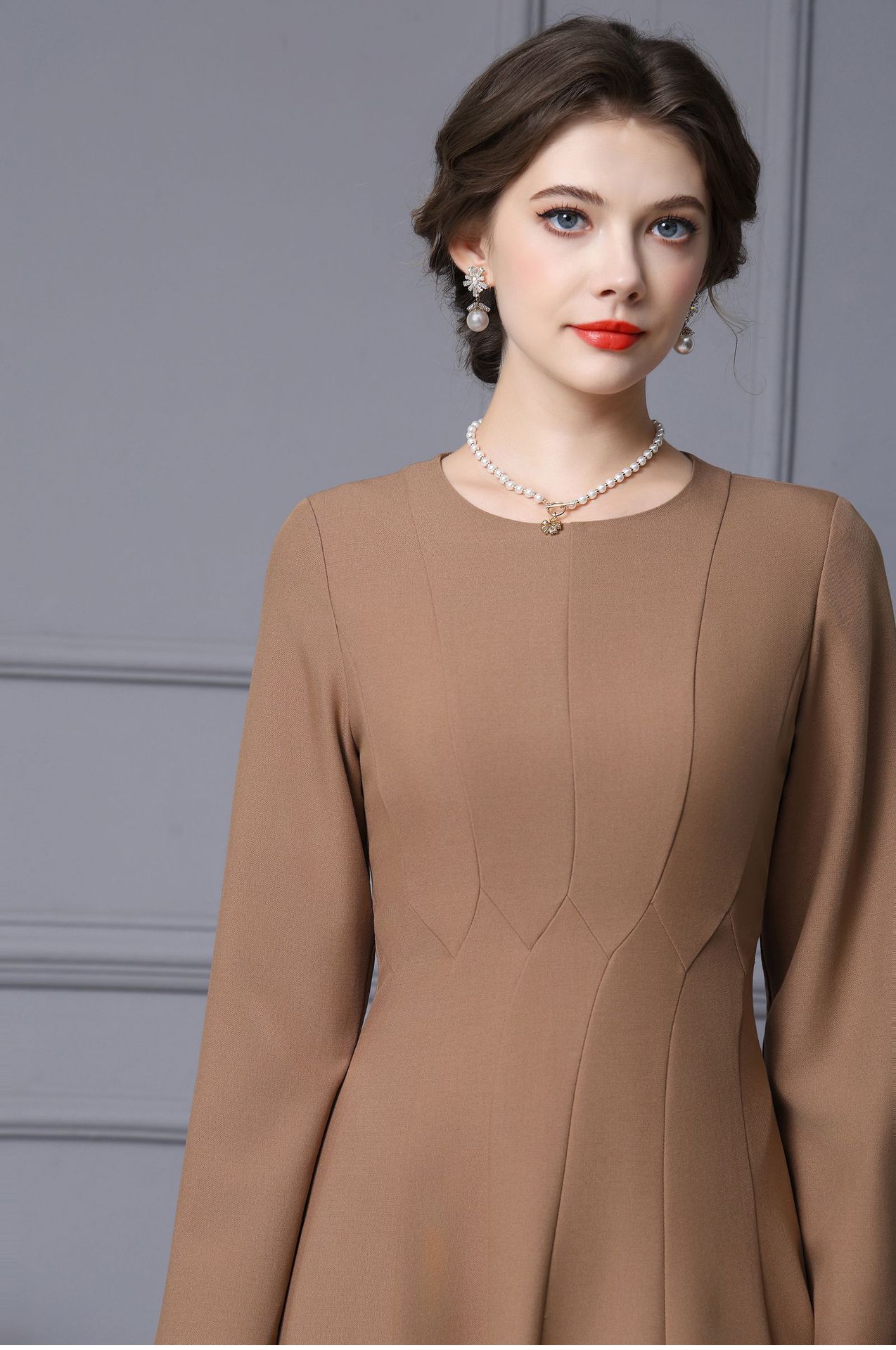 Product Name 产品名称: 2025 Autumn-Winter New Arrival: Simple and Elegant A-Line Dress with Long Sleeves and Waist-Cinching Design, Flattering for Pear-Shaped Figures