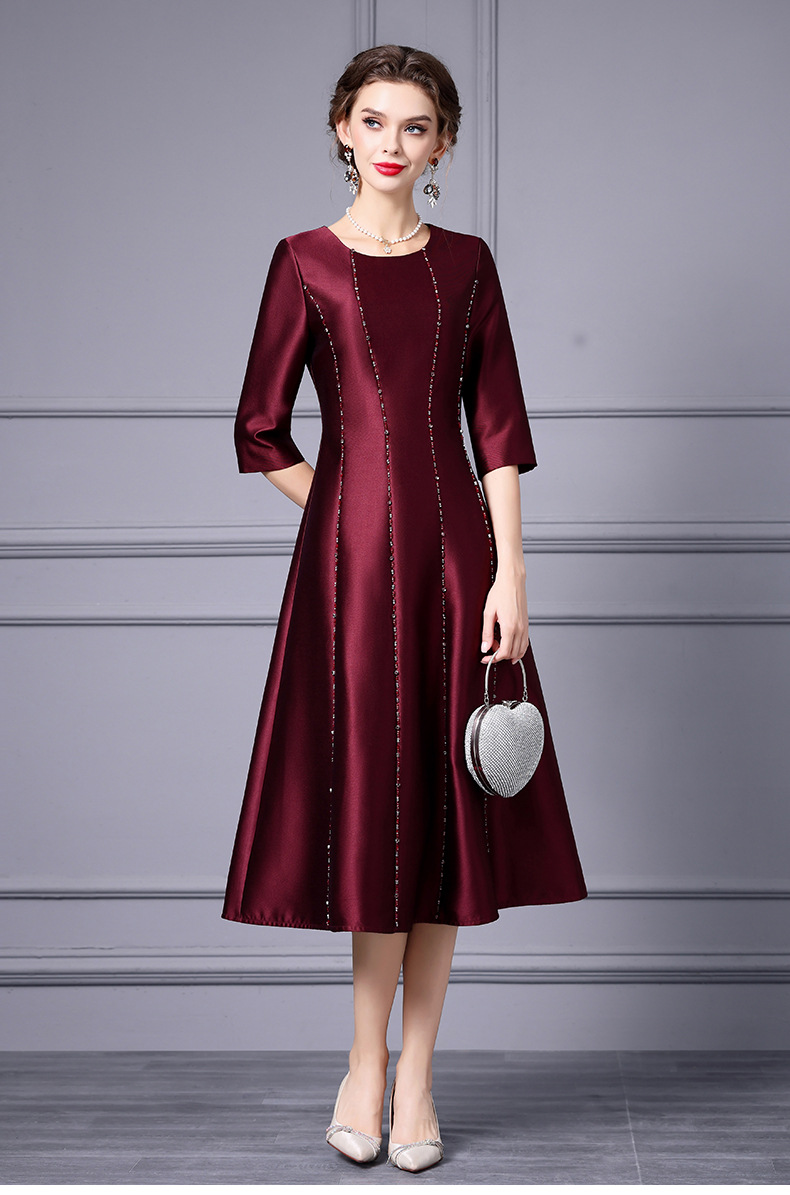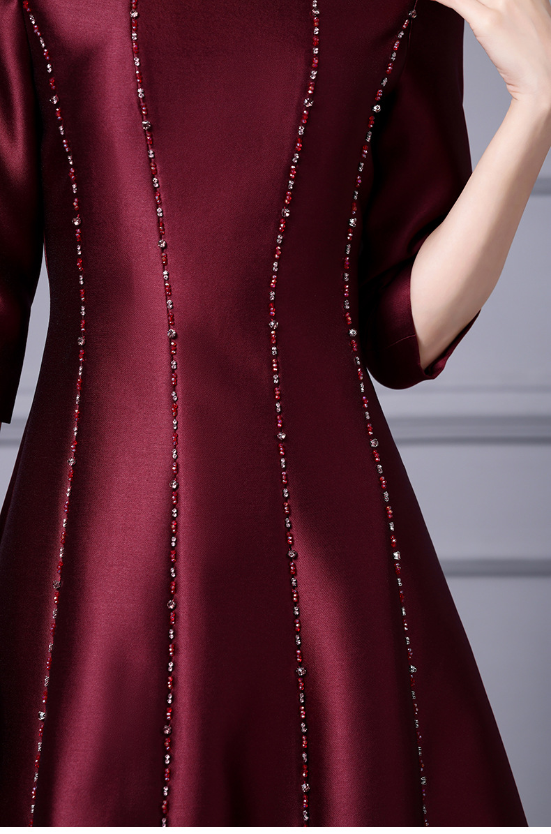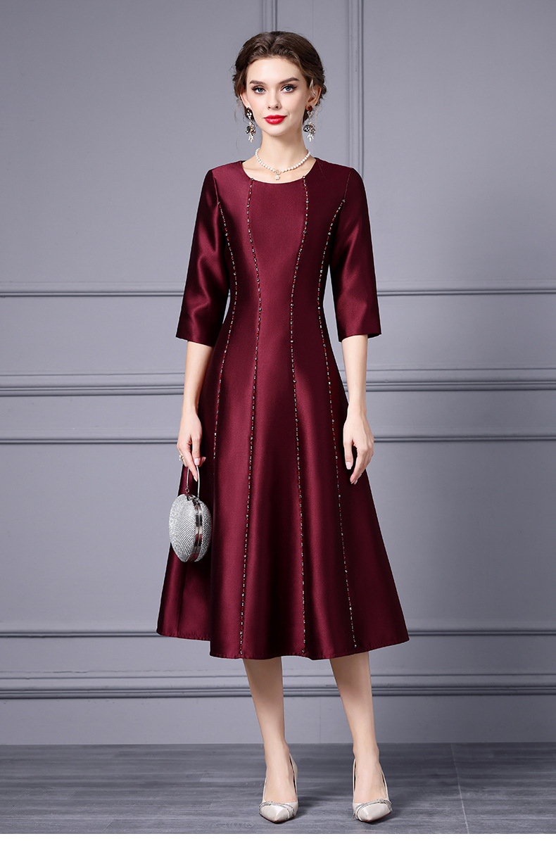 Product Name 产品名称: 2025 Autumn New Arrival Elegant Beaded A-Line Dress for Mature Ladies - Stylish and Noble Formal Gown