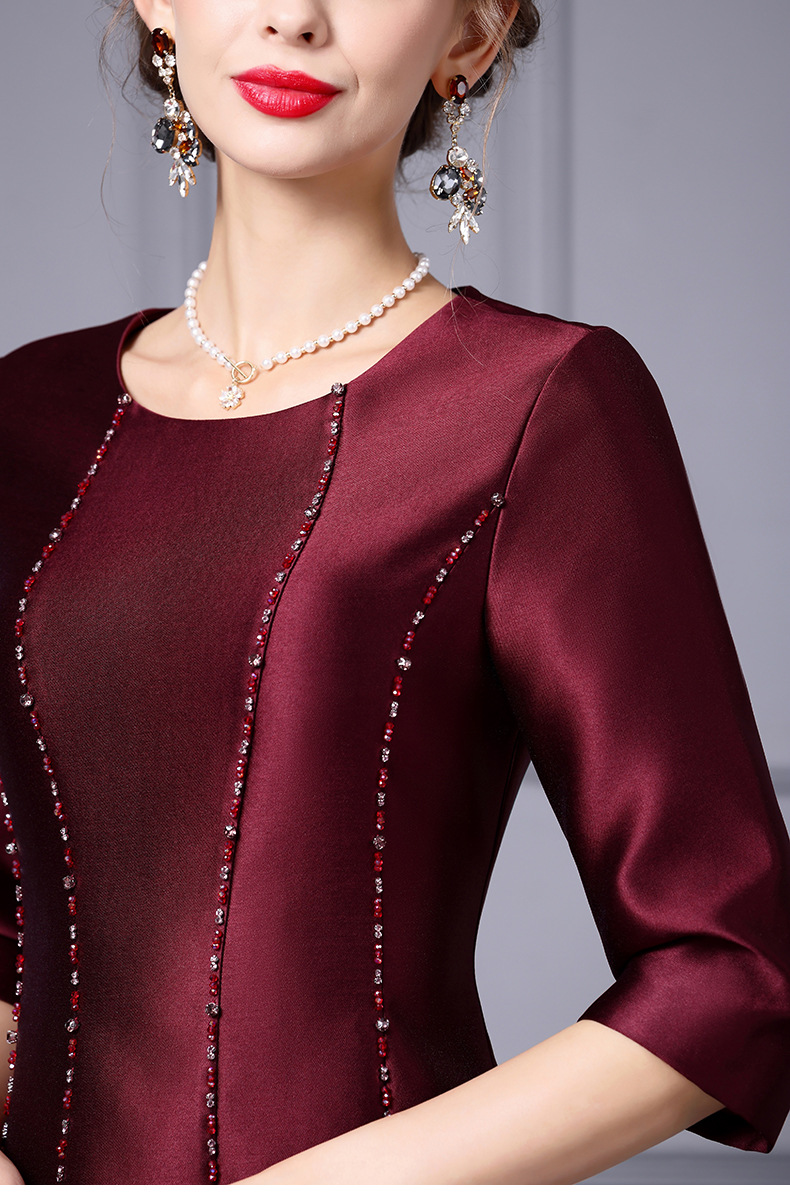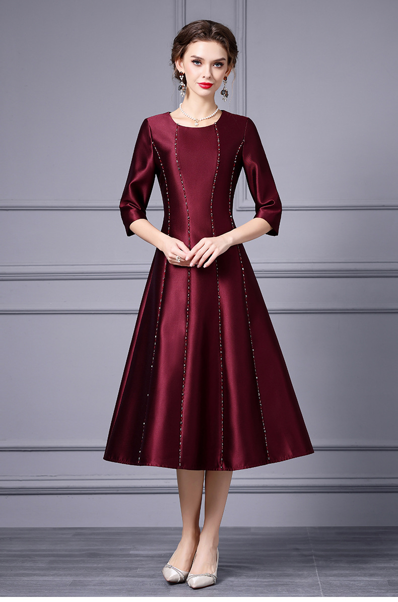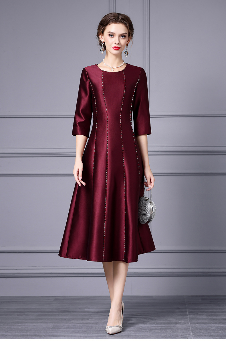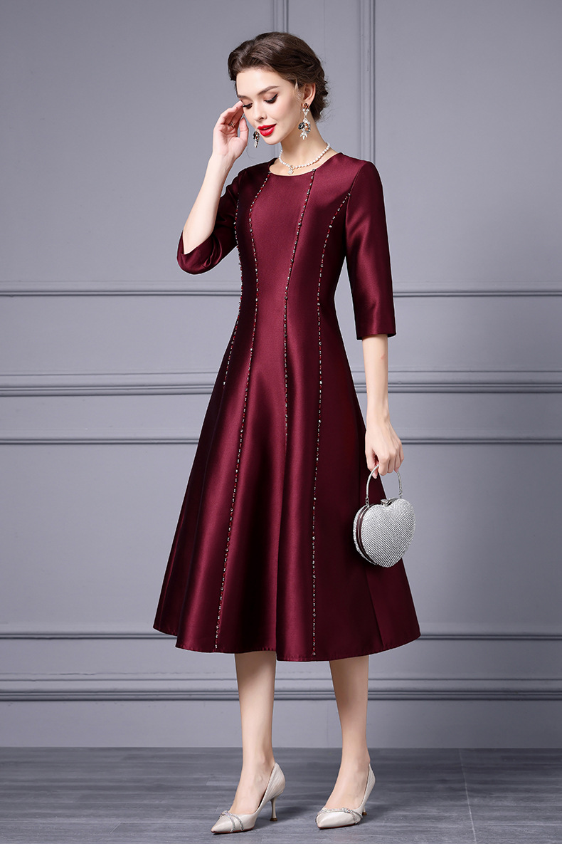 Product Name 产品名称: 2025 Autumn New Arrival Elegant Beaded A-Line Dress for Mature Ladies - Stylish and Noble Formal Gown