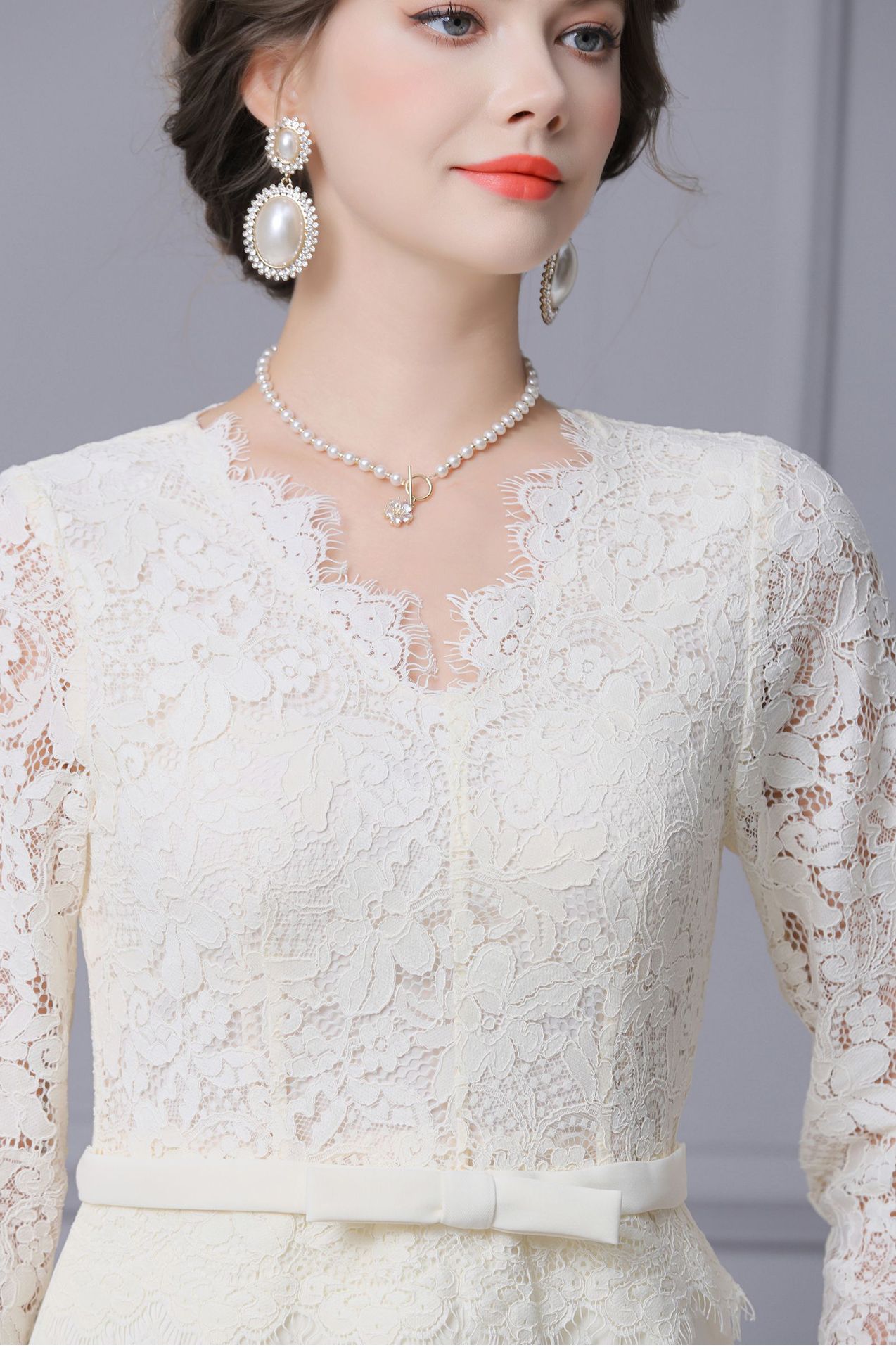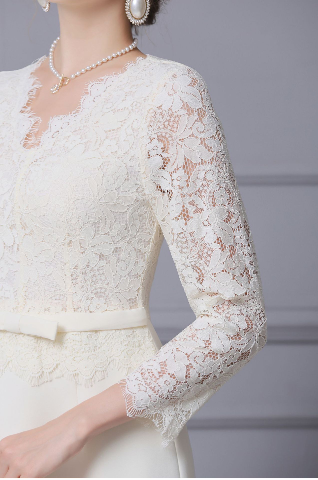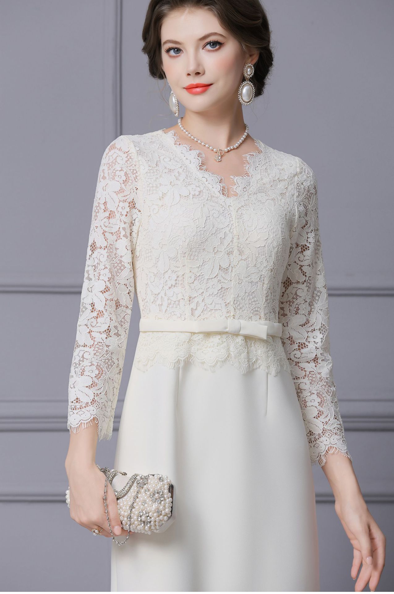 Product Name 产品名称: 2025 Autumn New Arrival Stunning White Lace Long-Sleeved Dress with Coat - Shenzhen Nanyou Collection