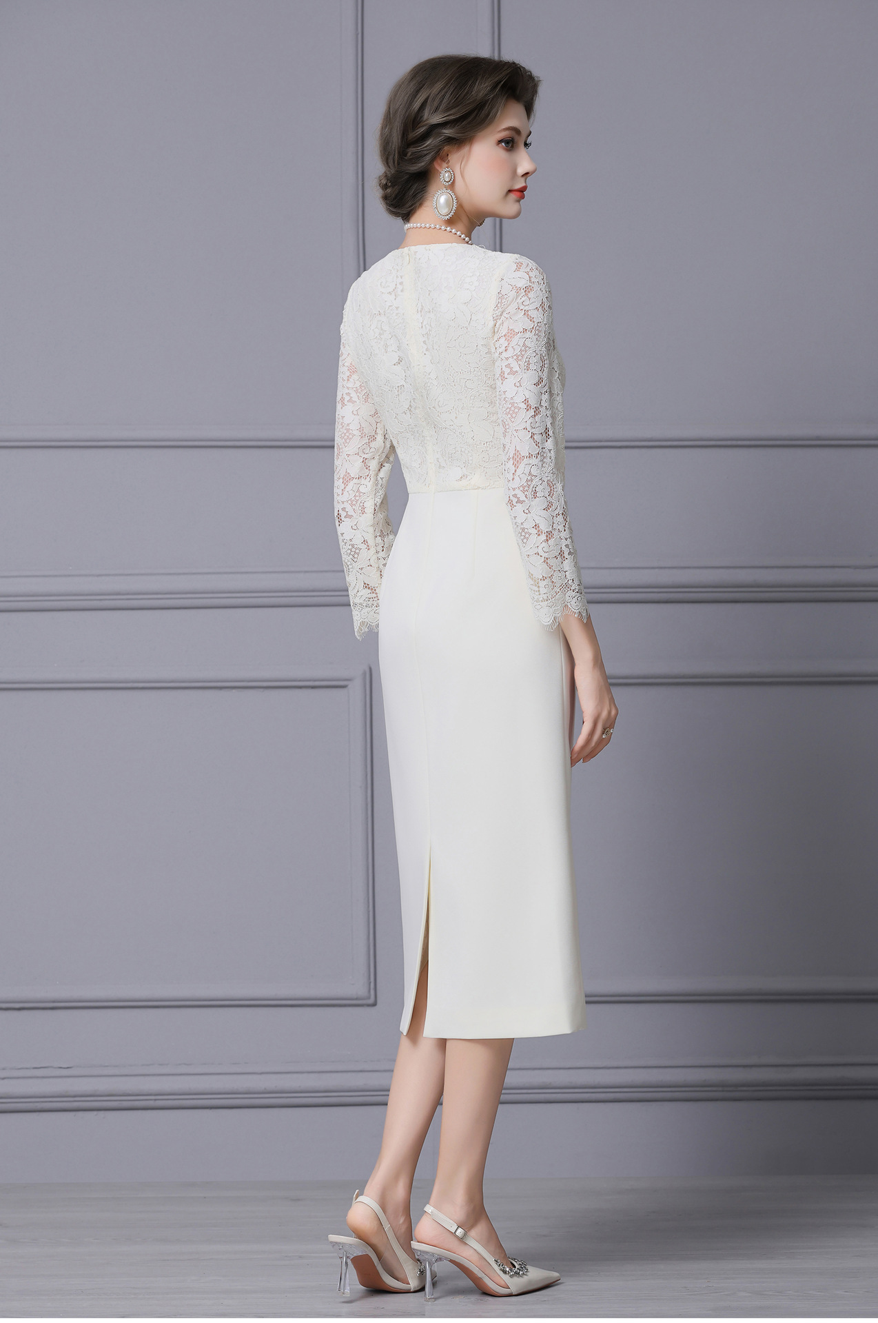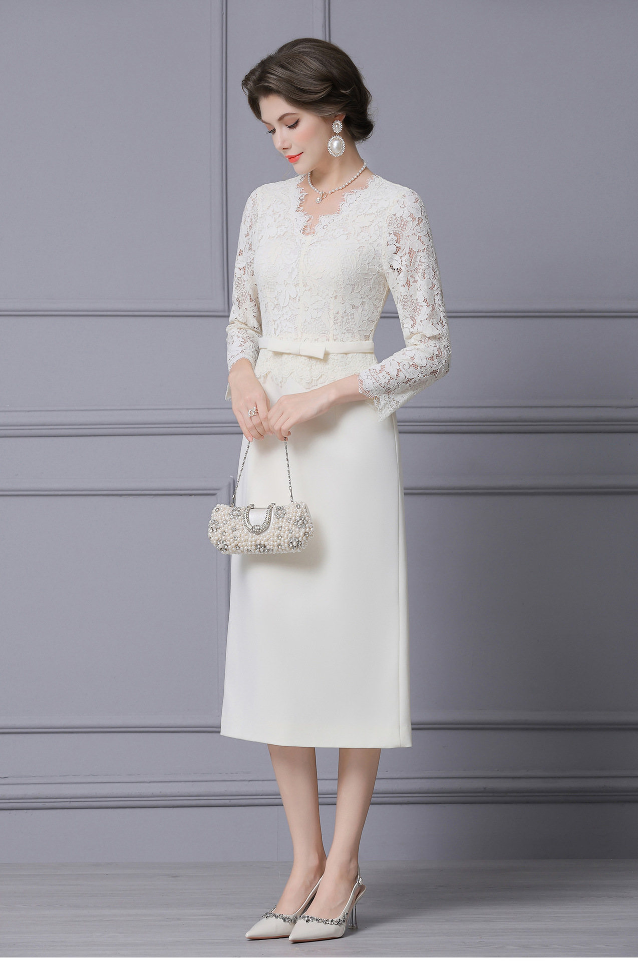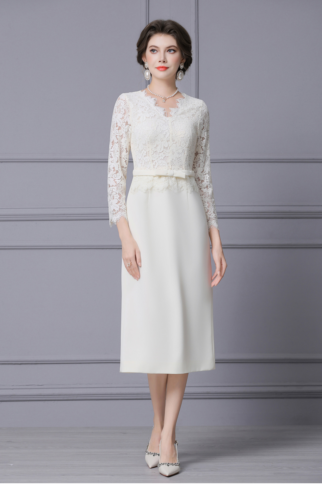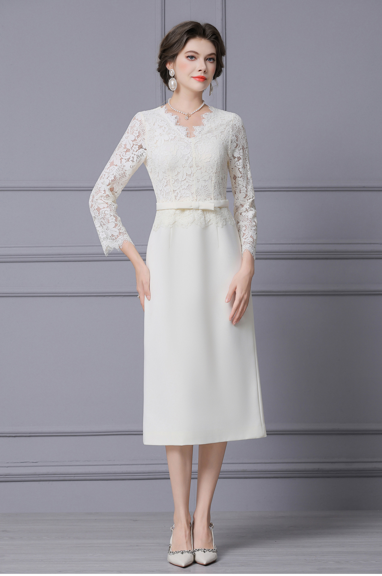 Product Name 产品名称: 2025 Autumn New Arrival Stunning White Lace Long-Sleeved Dress with Coat - Shenzhen Nanyou Collection