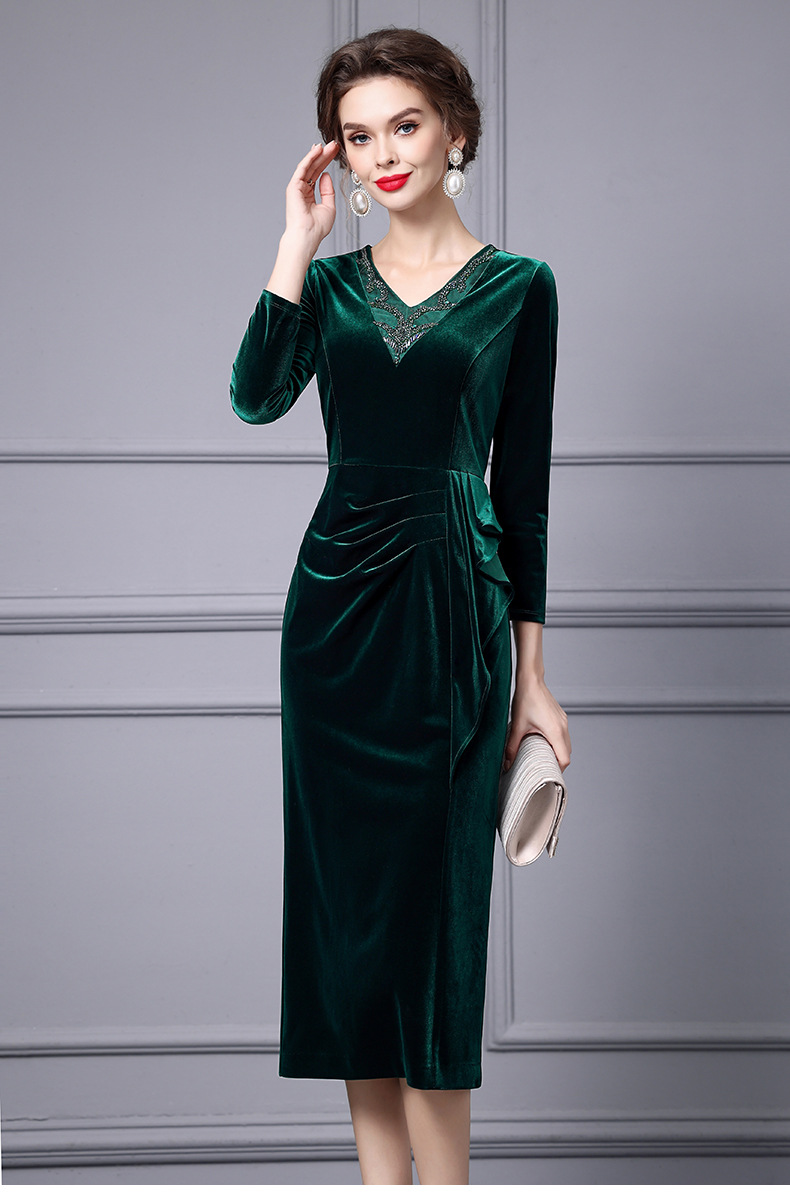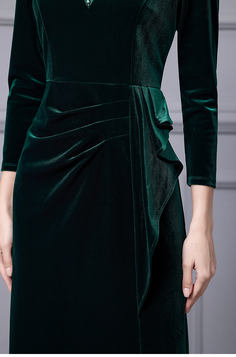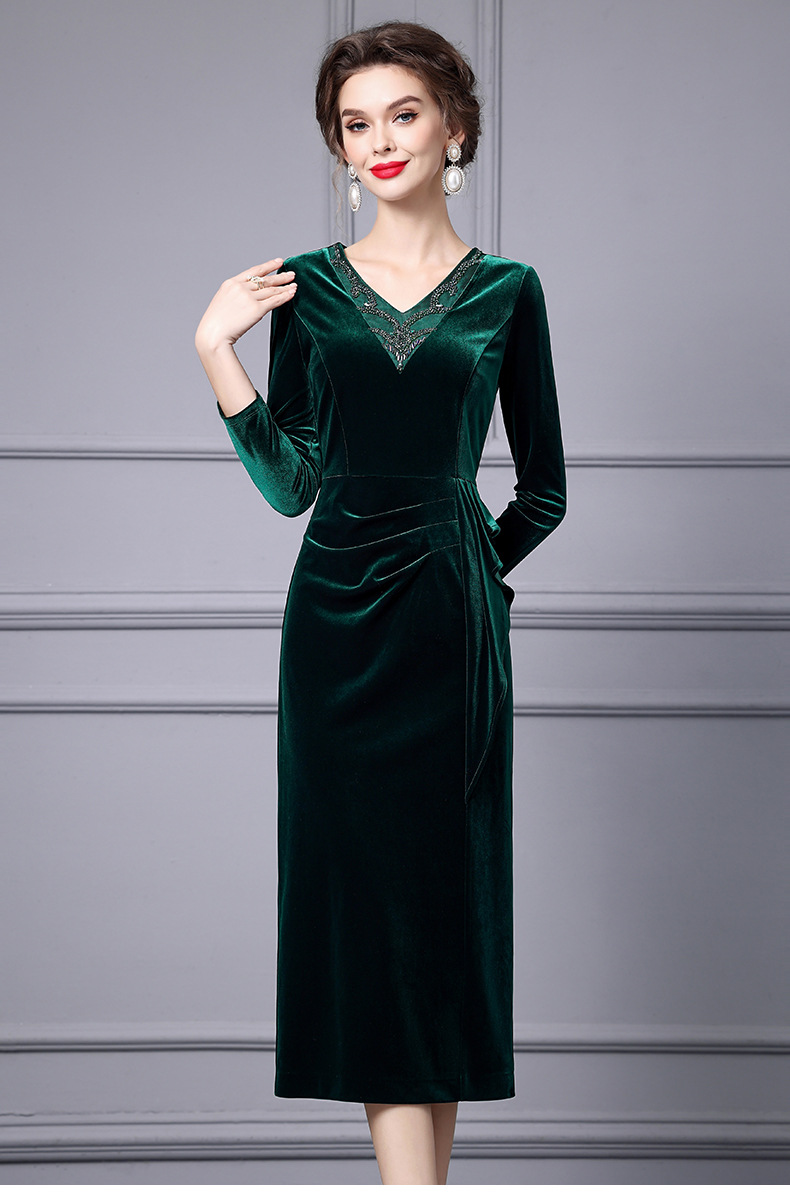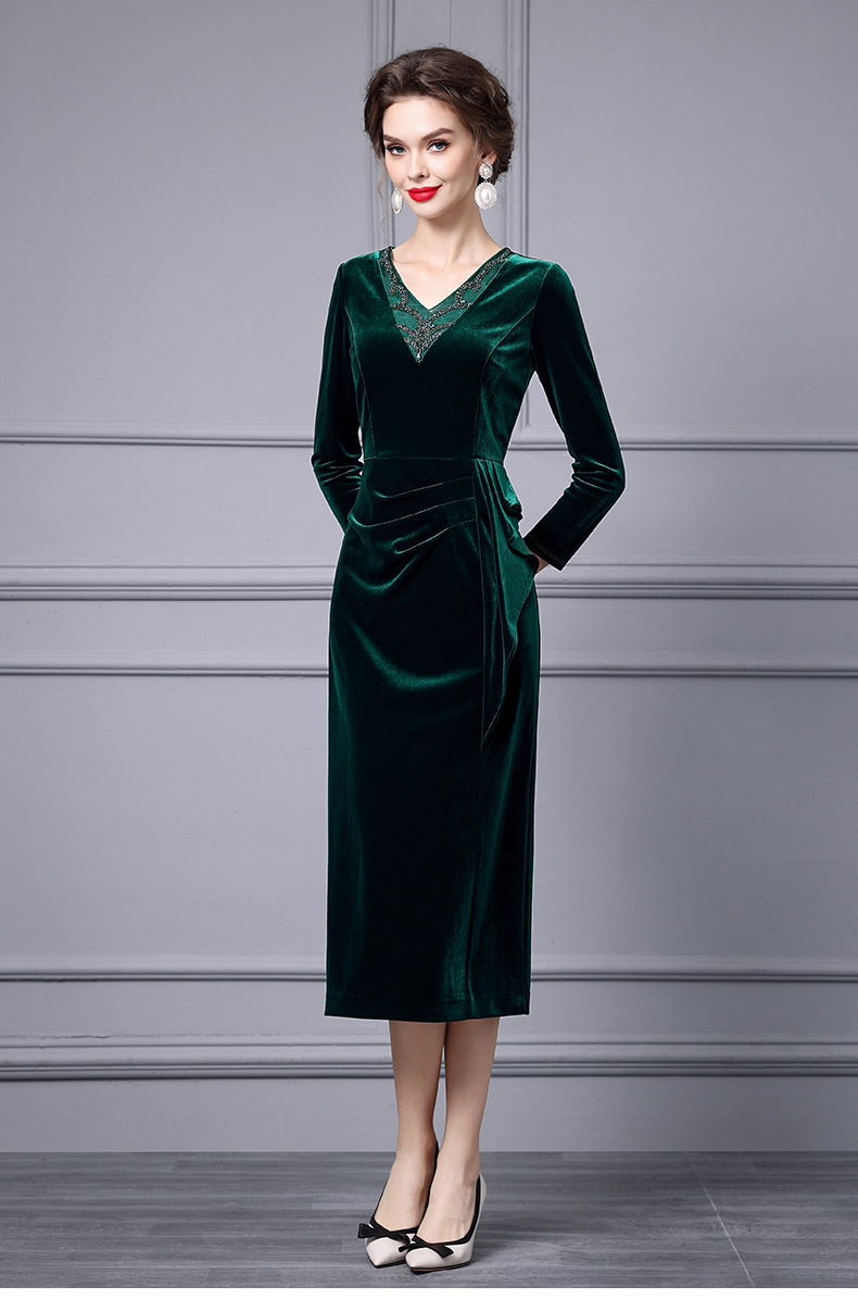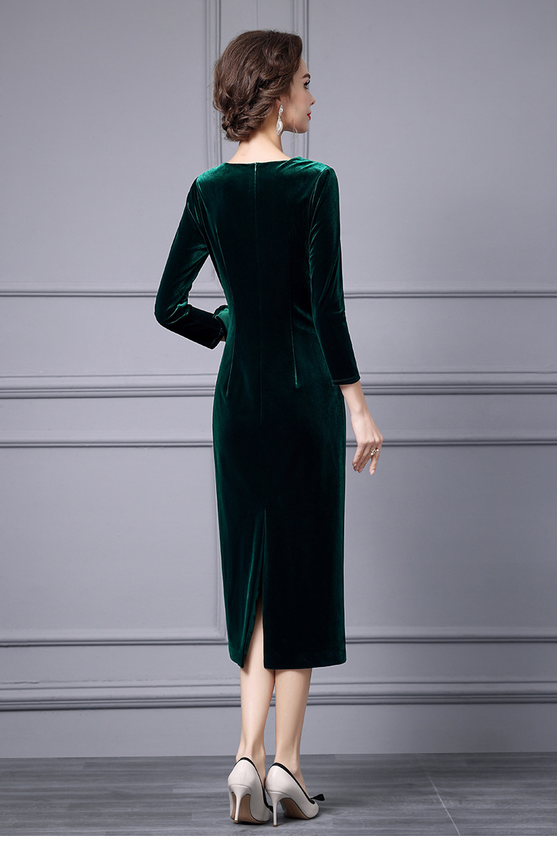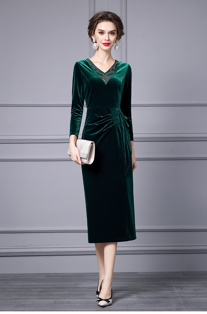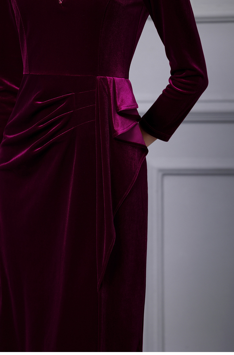 Product Name 产品名称: 2025 Autumn New Arrival: Mature & Elegant Velvet Dress in Wine Red - High-Waisted Slimming Mid-Length Gown