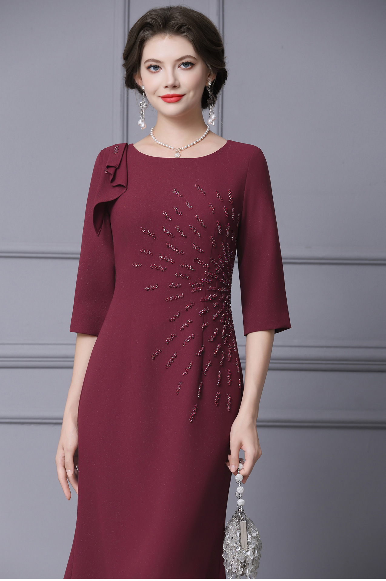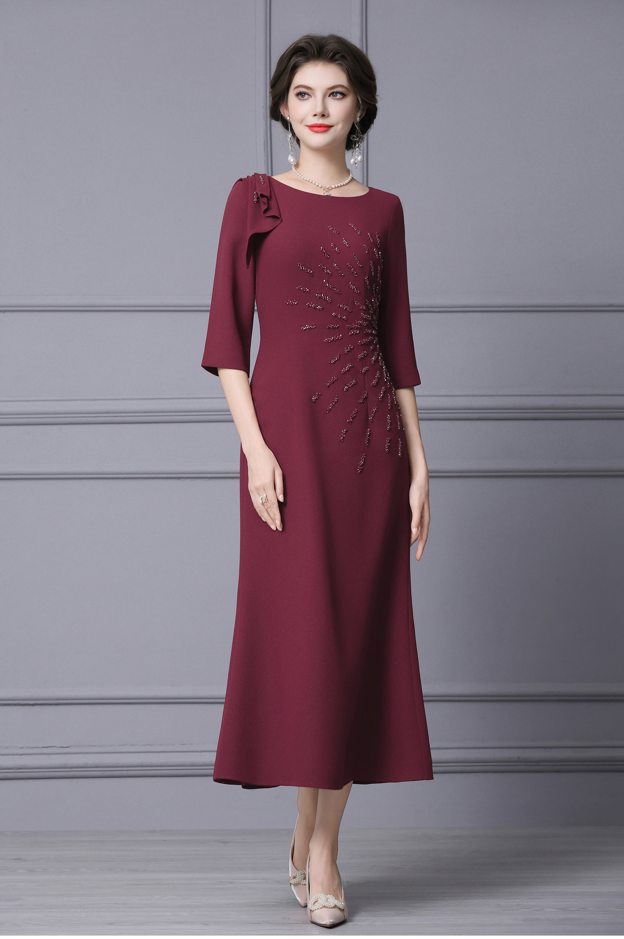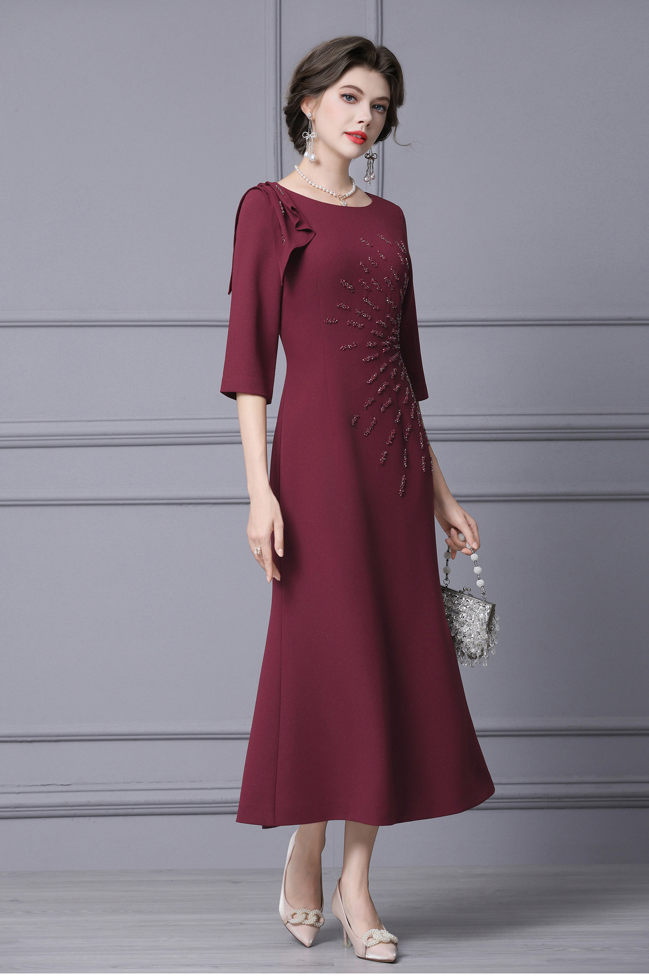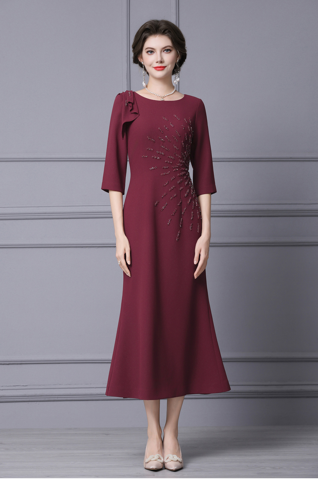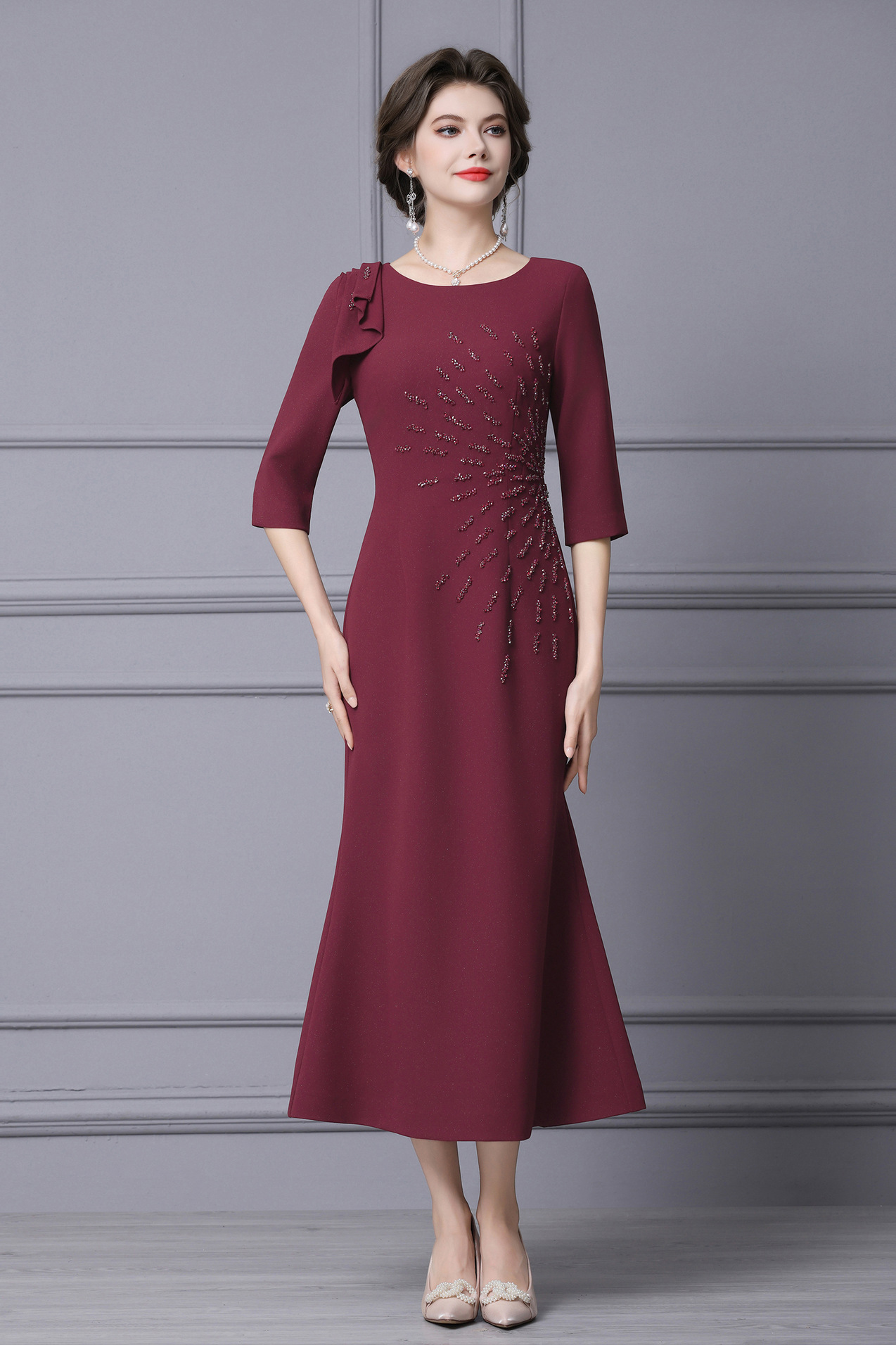 Product Name 产品名称: 2025 Autumn New Arrival Elegant Long Mermaid Dress for Formal Occasions - Feminine, Slimming, and Stomach-Covering Design
